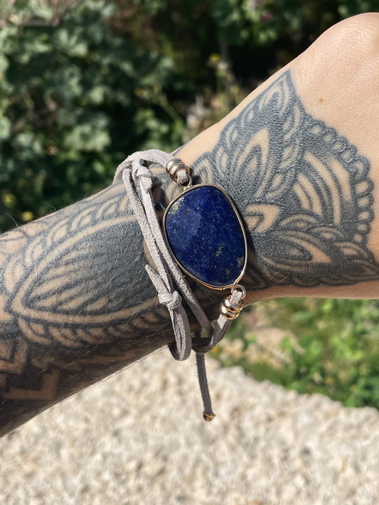 Lapis Lazuli Grey Faux Leather Multi-Purpose Bracelet/Anklet/Necklace