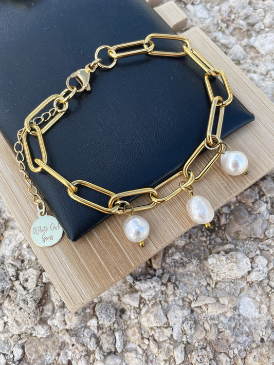 Mother of Pearl Chunky Chain Gold Bracelet