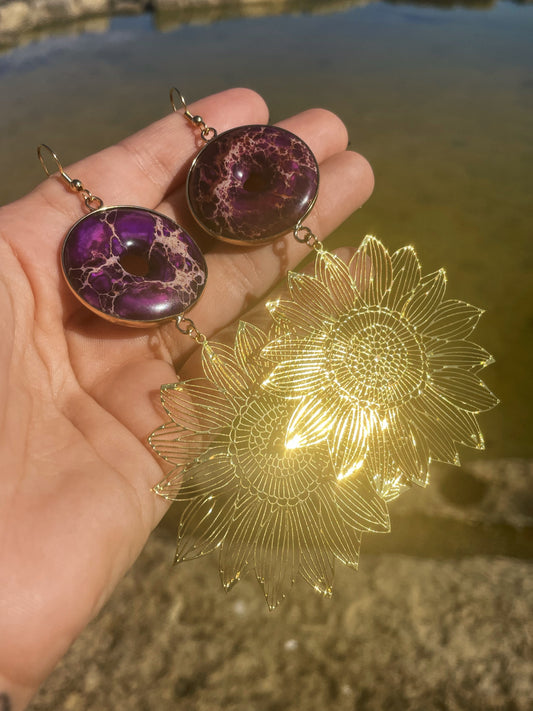 Imperial Jasper and Sunflower Gold Earrings