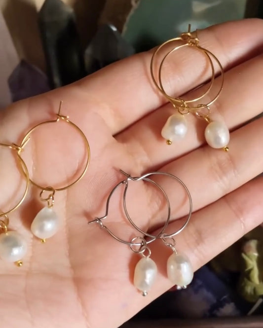Mother of Pearl Hoop Gold or Silver Earrings