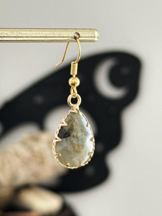 Labradorite Teardrop Gold Earrings