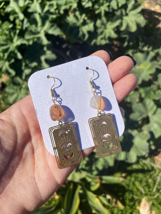 Carnelian and Tarot Card Gold Earrings ︱ Repurposed
