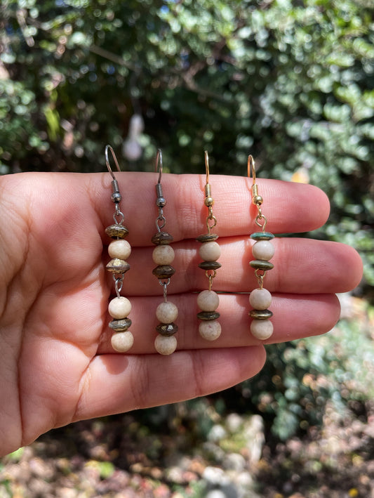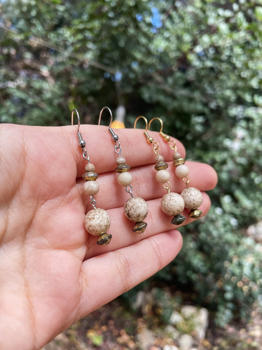 Beige Beaded Gold and Silver Earrings ︱ Repurposed