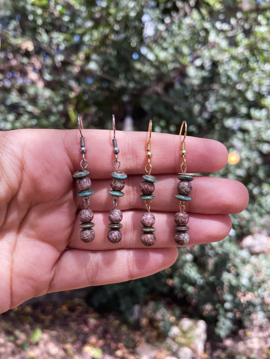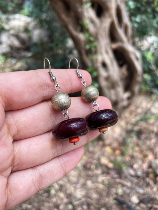 Brown Beaded Gold and Silver Earrings ︱ Repurposed