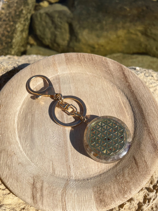 Fluorite and Flower of Life Gold, Lobster Ring Keychain