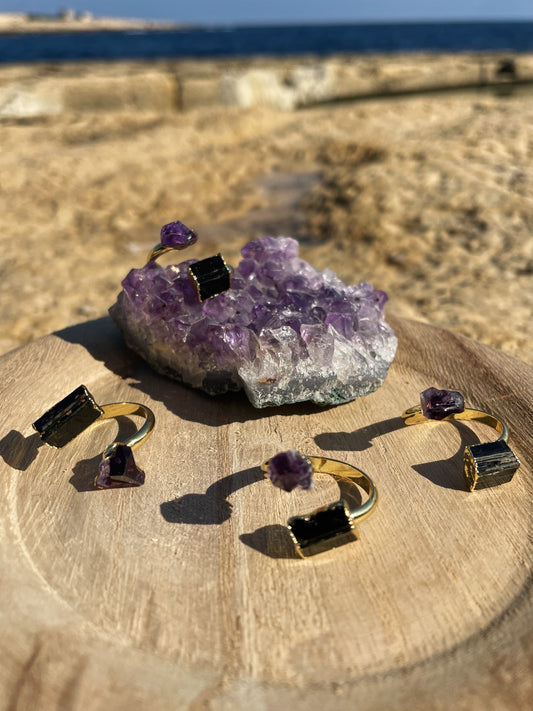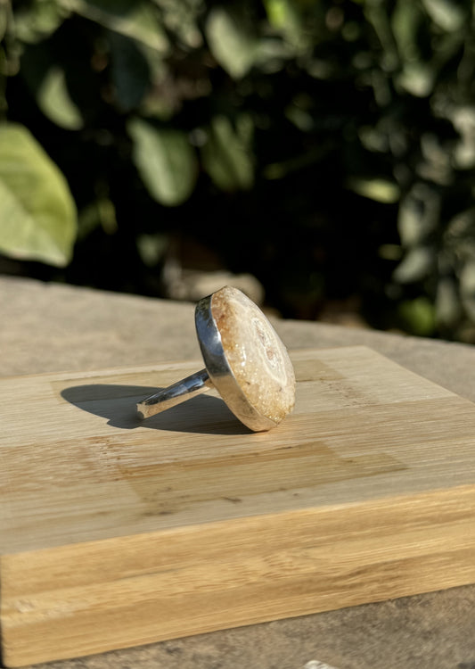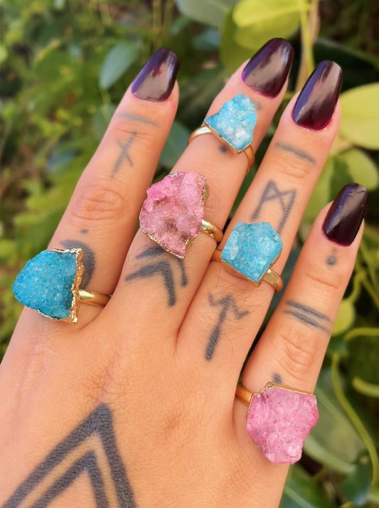 Pink, Blue Dyed Quartz Druzy Gold Ring