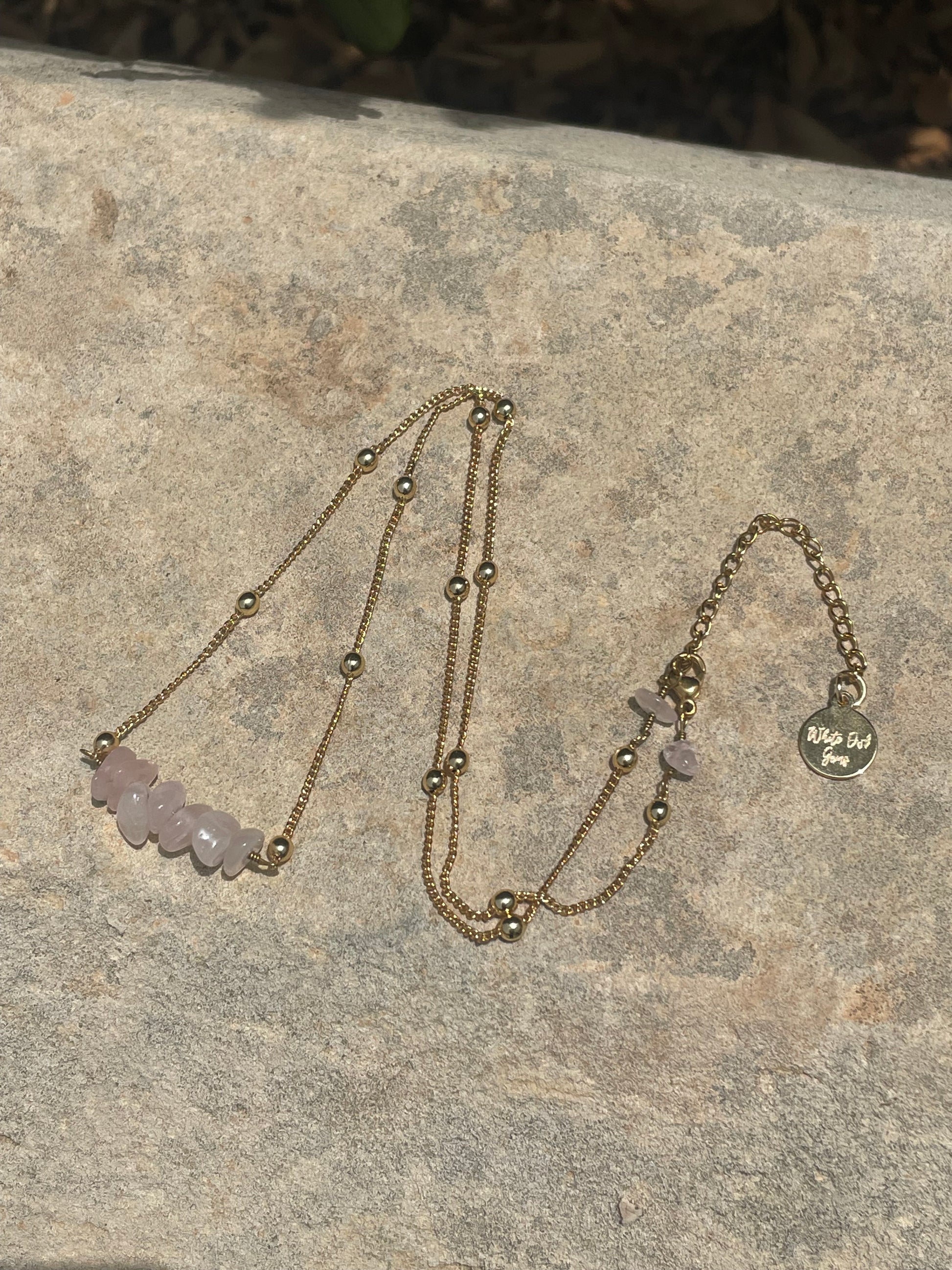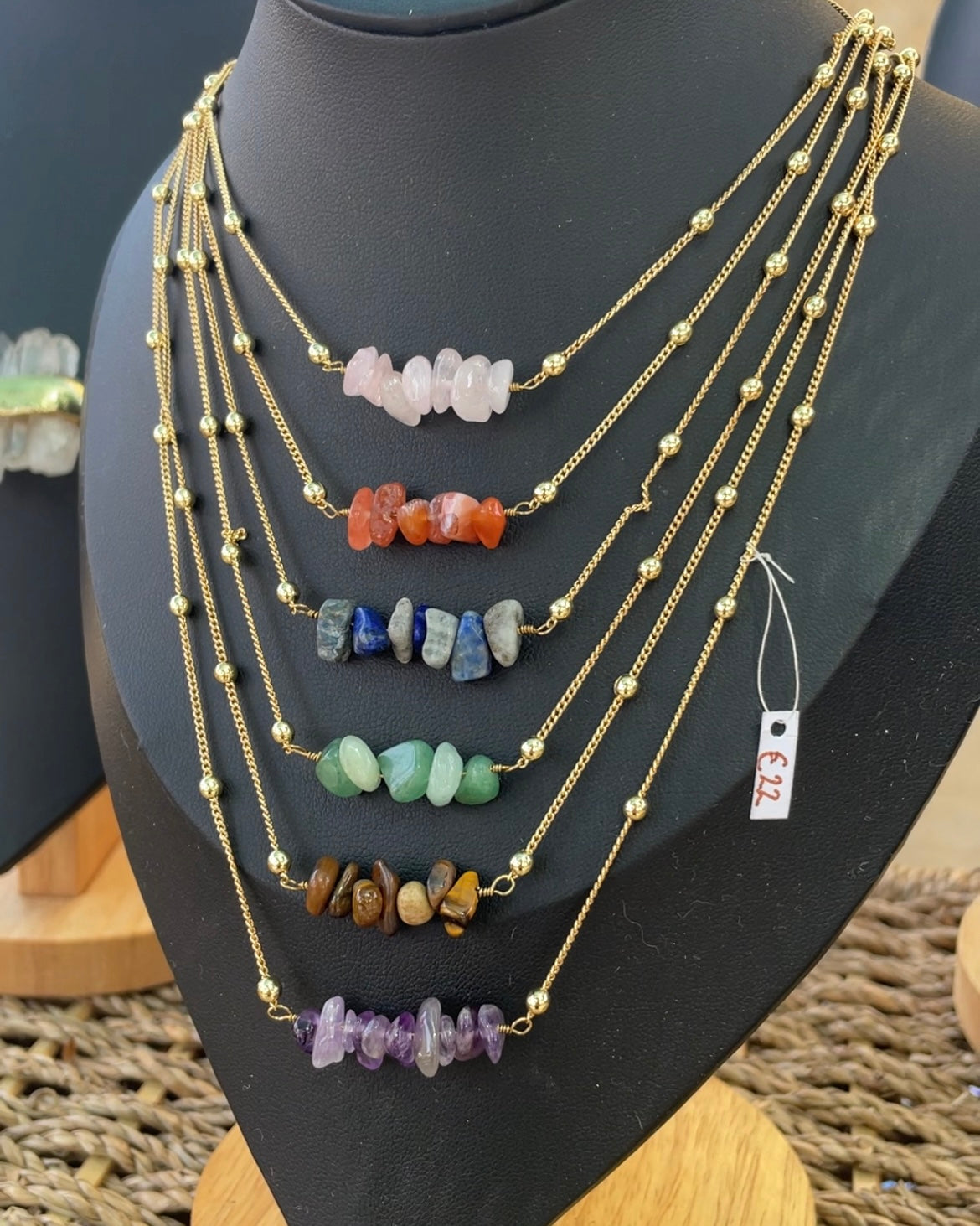 Rose Quartz, Carnelian, Lapis Lazuli, Aventurine, Tiger's Eye, Amethyst, Gold Necklace