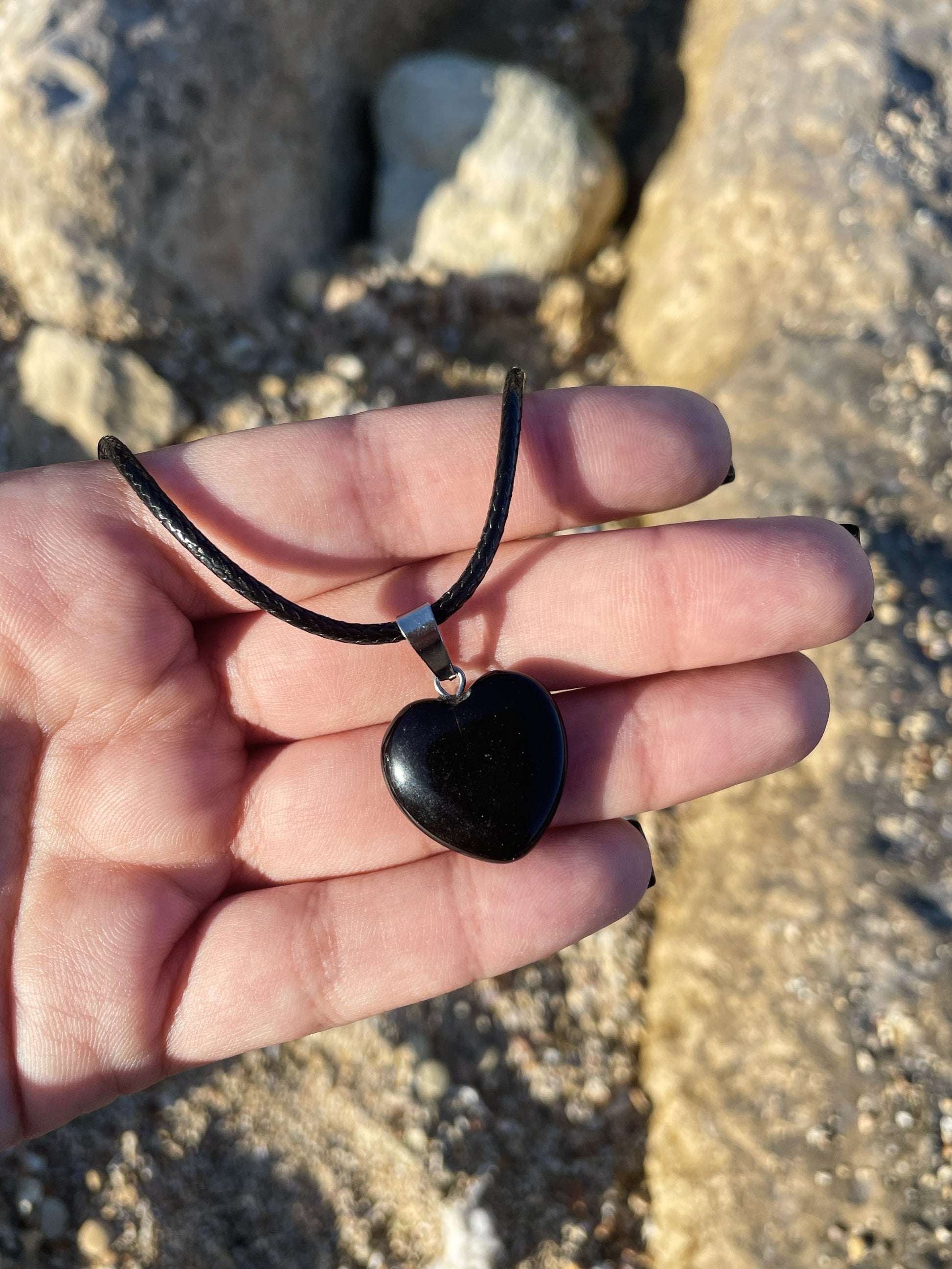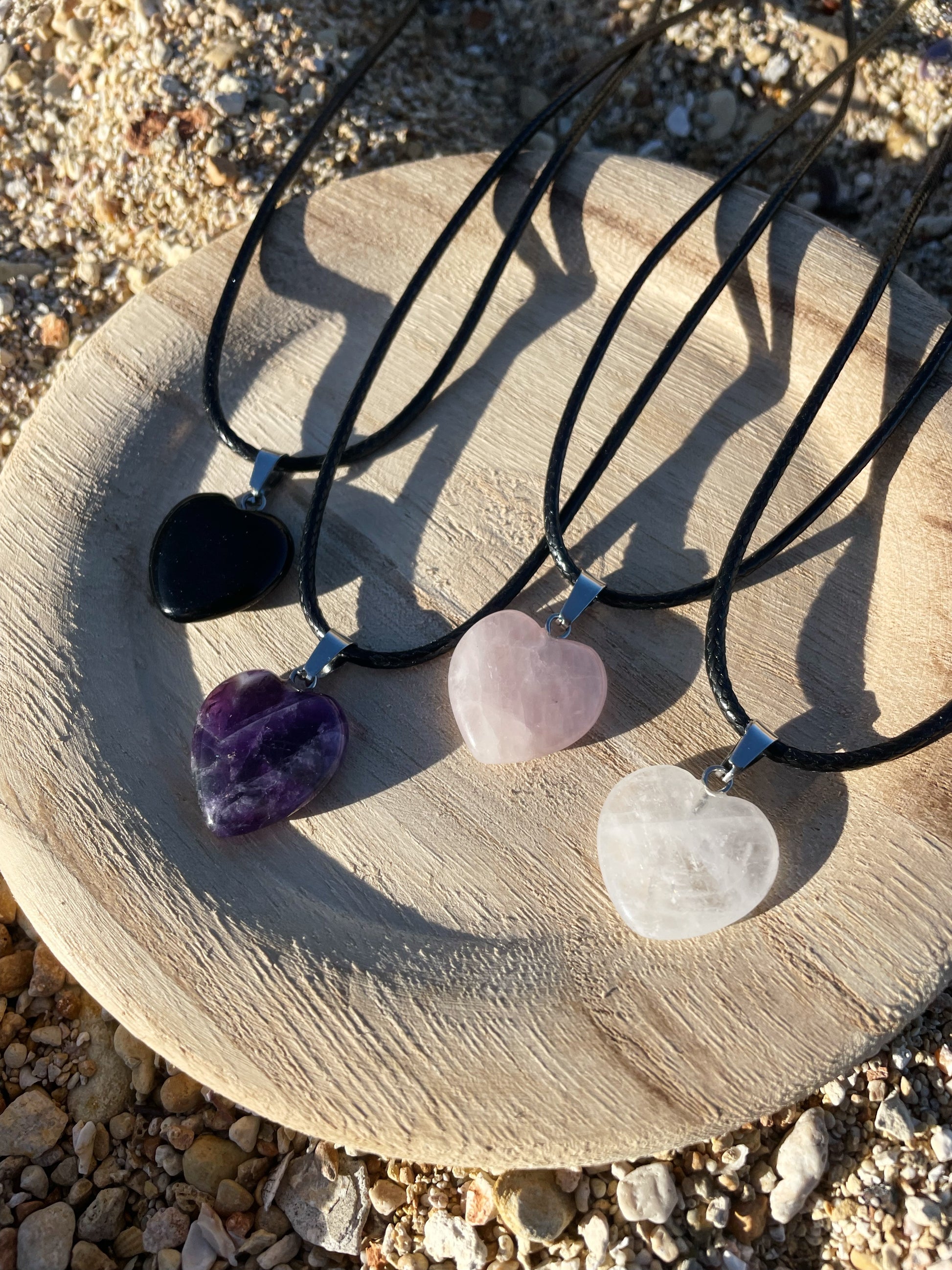 Black Onyx, Amethyst, Rose Quartz, Clear Quartz Heart Necklace