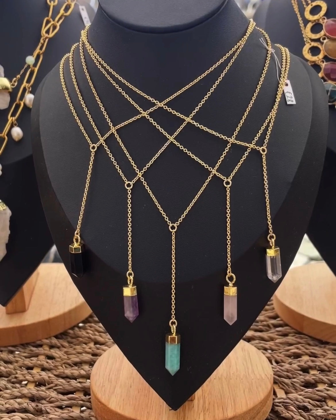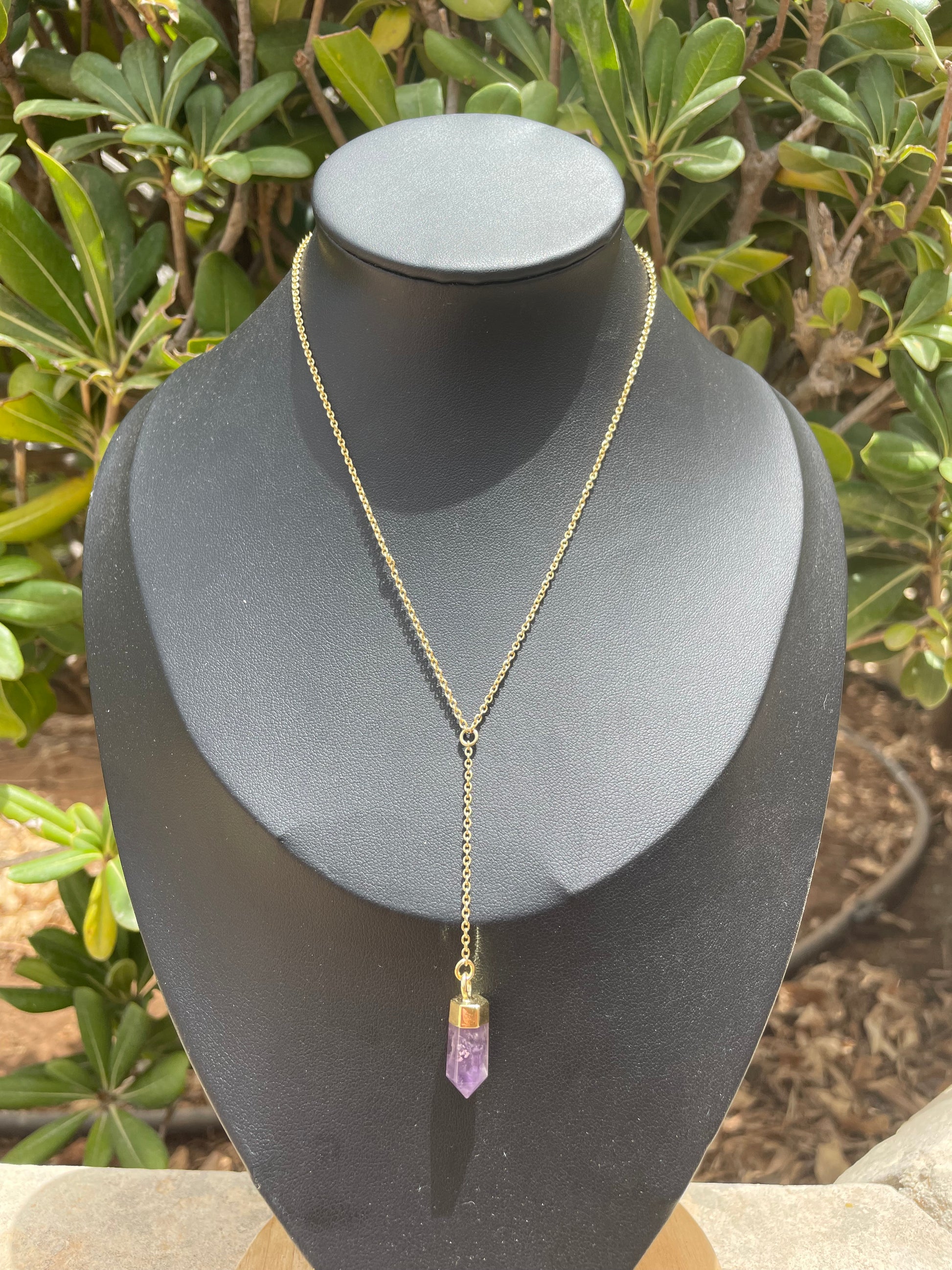 Black Onyx, Amethyst, Aventurine, Rose Quartz, Clear Quartz Drop Necklace