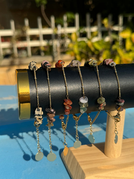 Various Stones Chips Wire-Wrapped Gold Bracelet