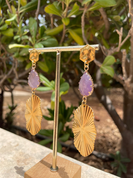 Amethyst Ornamental Stud Gold Earrings